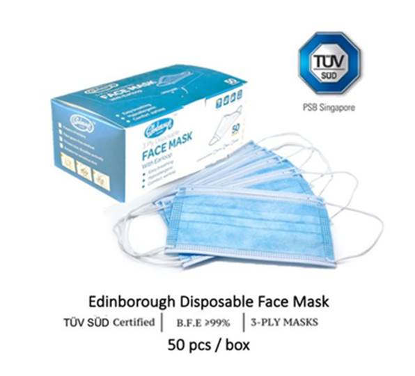 Edinborough 3-ply disposable face masks are comfortable and well-fitting. They have a Bacterial Filtration Efficiency* (BFE) value of ≥99%. Recommended for Healthcare, F&B, Household, and Industrial use.